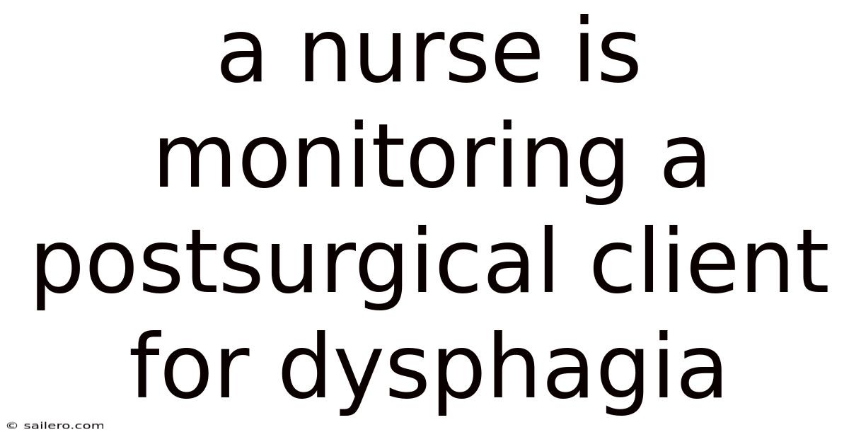 Proper positioning is a non-negotiable intervention. When a nurse is monitoring a postsurgical client for dysphagia, they must ensure the patient is positioned correctly during and after meals Turns out it matters..