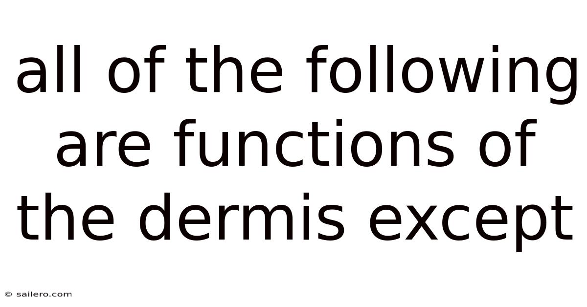 All of the Following Are Functions of the Dermis Except: Understanding the Role of the Skin’s Middle Layer