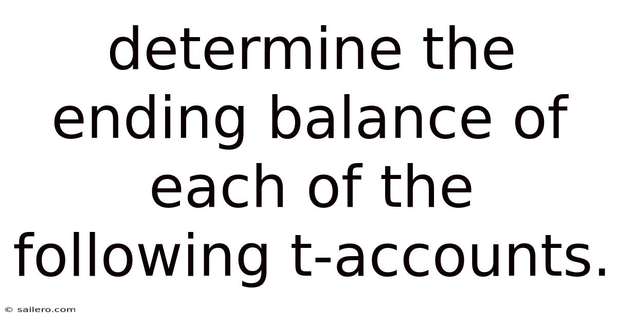 Determine the Ending Balance of Each of the Following T-Accounts is a fundamental skill in accounting that ensures the accuracy of financial records. This process is critical for preparing financial statements, identifying errors, and maintaining the integrity of the double-entry bookkeeping system. T-accounts serve as a visual representation of individual ledger accounts, showing how transactions affect assets, liabilities, equity, revenue, and expenses. Mastering this skill provides a clear snapshot of an organization’s financial health at a specific point in time Took long enough..