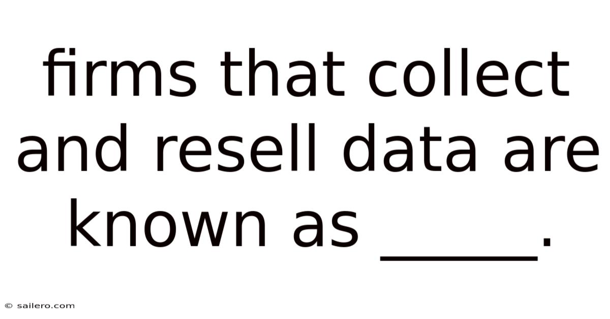 Firms That Collect and Resell Data Are Known as Data Brokers