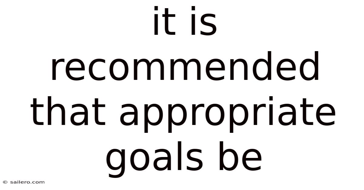 Setting clear, realistic, and meaningful objectives is a cornerstone of personal growth, professional success, and organizational performance. In real terms, this recommendation is not merely motivational fluff; it is grounded in psychology, management theory, and evidence‑based practices that show how purposeful goal‑setting drives motivation, improves focus, and enhances achievement. In real terms, when you hear the phrase “it is recommended that appropriate goals be …”, the missing verb is usually set, established, or defined. In this article we will explore why appropriate goals matter, how to create them, the scientific mechanisms behind their effectiveness, common pitfalls to avoid, and practical steps you can take right now to embed goal‑setting into your daily routine Small thing, real impact..