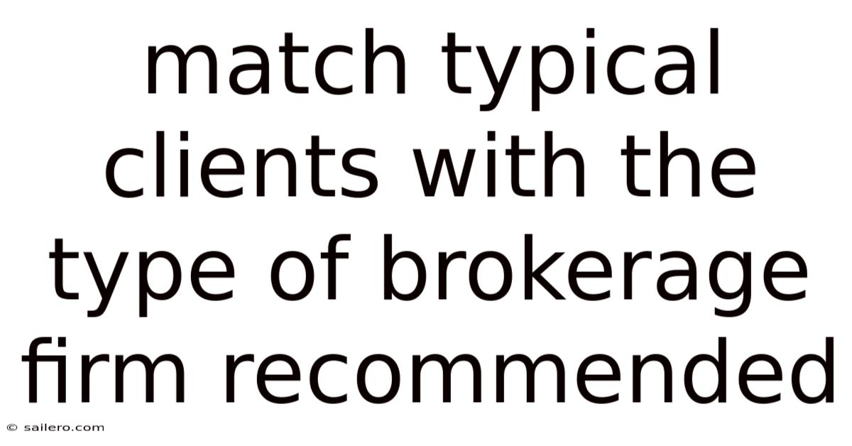 Whenyou match typical clients with the type of brokerage firm recommended, you are essentially aligning an investor’s financial goals, experience level, and personal preferences with the services and pricing model that best suit them. But this alignment not only improves client satisfaction but also enhances the likelihood of achieving long‑term investment success. In today’s diverse market, a one‑size‑fits‑all approach no longer works; investors range from novices seeking guidance to seasoned professionals demanding sophisticated tools. Understanding the key client categories and the brokerage models that complement them is therefore essential for any advisor, platform, or firm aiming to build lasting relationships Simple, but easy to overlook..