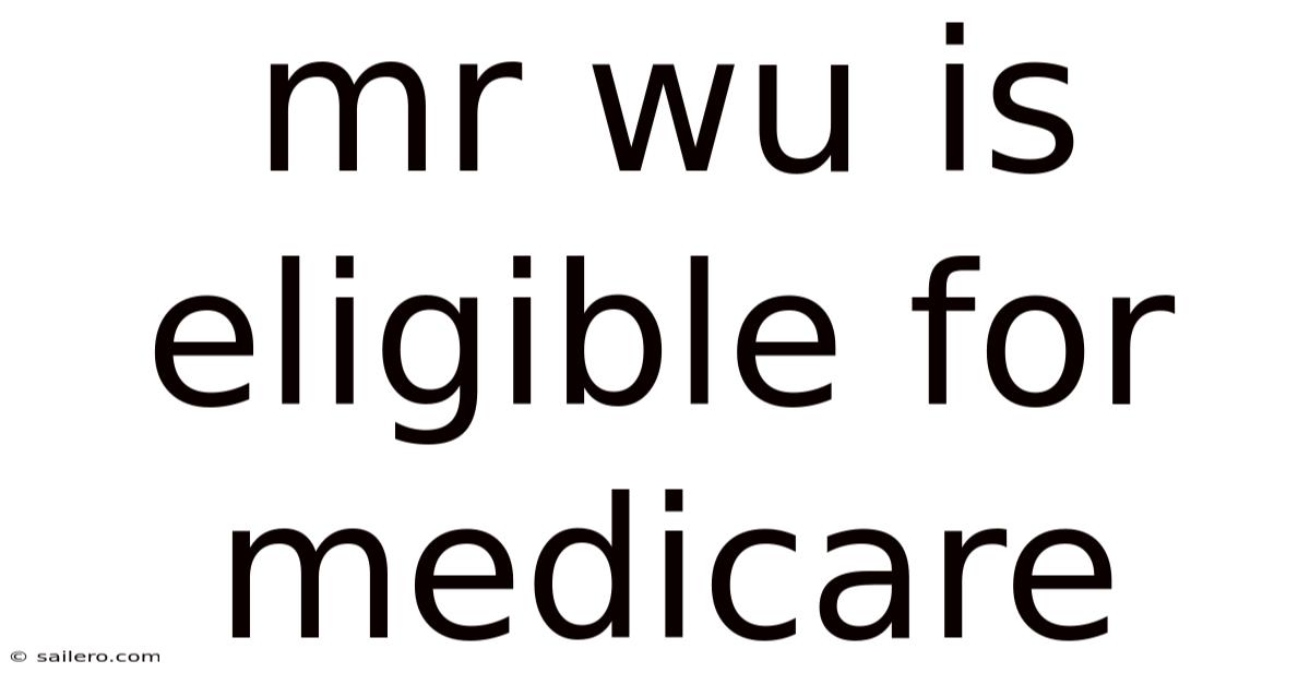 Medicare is a federal health‑insurance program that provides coverage for millions of Americans, primarily those who are 65 or older or who meet specific disability criteria. Which means when you hear a statement like “Mr. Wu is eligible for Medicare,” it triggers a cascade of questions about age, work history, residency, and the benefits he can now access. This article breaks down the exact reasons Mr. Wu qualifies, outlines the steps he must take to enroll, explains the different parts of Medicare, and offers practical guidance for navigating the system successfully.