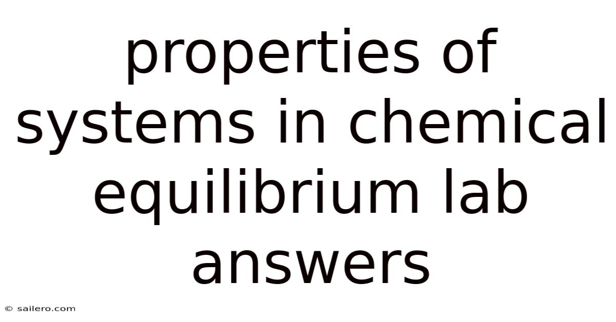 Properties of Systems inChemical Equilibrium Lab Answers