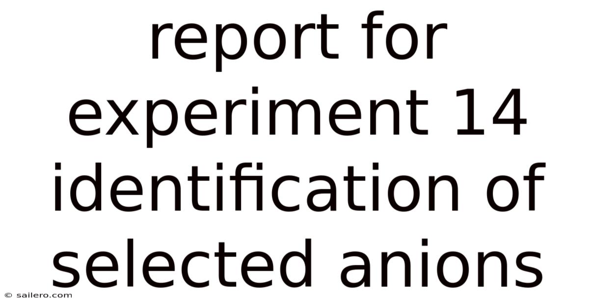The nuanced dance between chemistry and precision defines the very essence of scientific inquiry, particularly when it comes to uncovering hidden layers within complex systems. That's why the anticipation of discovering novel insights hinges on the careful orchestration of variables, control measures, and data interpretation, all of which must align without friction to yield actionable outcomes. The process demands not only technical expertise but also a deep conceptual grasp of chemical principles to ensure accuracy and reliability. Practically speaking, anions, by their very nature, carry a profound influence on molecular interactions, physiological processes, and environmental dynamics, making their precise characterization a cornerstone of modern research. This leads to within the realm of laboratory experimentation, no endeavor is as critical as the meticulous identification of selected anions through rigorous testing. Worth adding: such precision underscores the indispensable role of experimental design in bridging theory and practice, allowing researchers to validate hypotheses and refine methodologies. Worth adding: this experiment 14 represents a critical milestone in understanding how specific anions contribute to biochemical equilibria, electrostatic behaviors, and reaction pathways. In this context, the experiment 14 transcends mere data collection; it becomes a testament to the discipline’s capacity to transform abstract concepts into tangible knowledge, shaping future studies and applications across disciplines Easy to understand, harder to ignore..