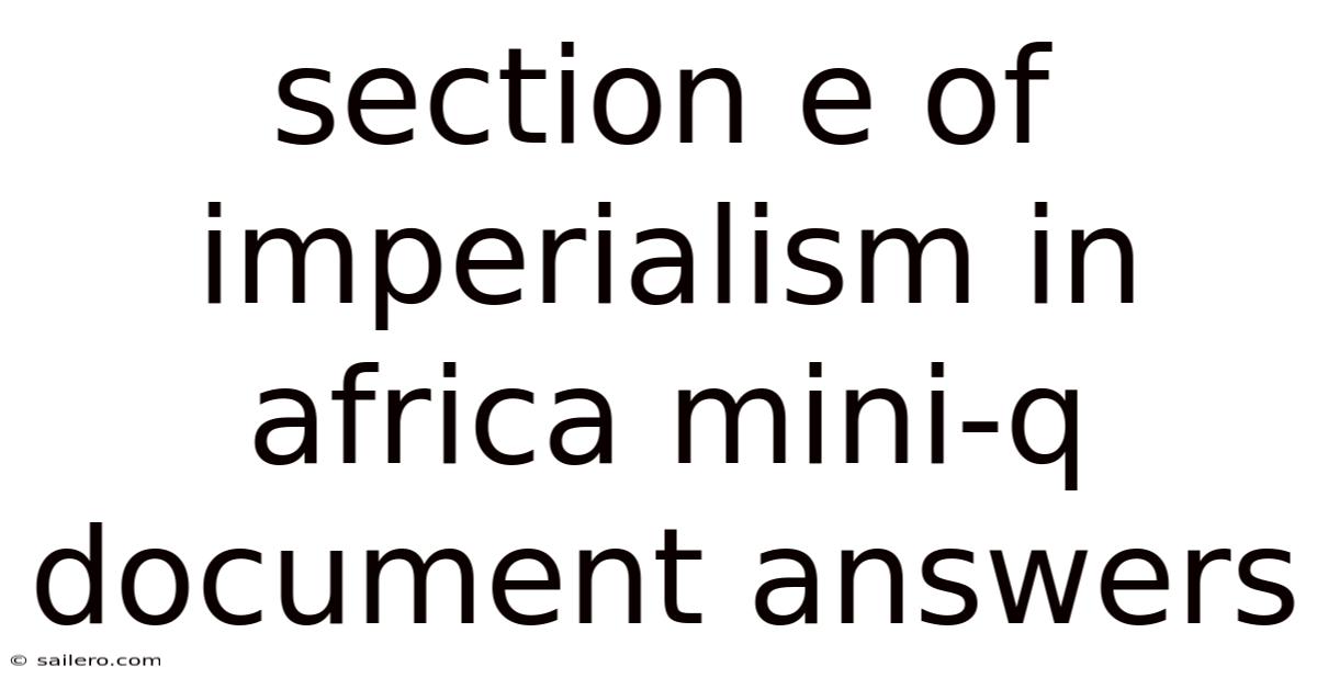 Imperialism in Africa: Section E Analysis and Mini-Q Document Answers