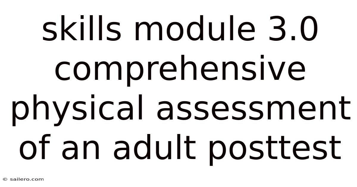 The Skills Module 3.Even so, 0 Comprehensive Physical Assessment of an Adult Posttest represents a cornerstone evaluation for healthcare professionals. Mastery of these skills ensures competent patient care, accurate diagnosis, and effective communication. Success in this posttest demonstrates not only technical proficiency but also the professional attributes essential for healthcare practice. Continued skill development and lifelong learning in physical assessment contribute to improved patient outcomes and enhanced clinical excellence. By approaching each assessment systematically and empathetically, healthcare providers can maximize diagnostic accuracy while maintaining patient comfort and trust Still holds up..