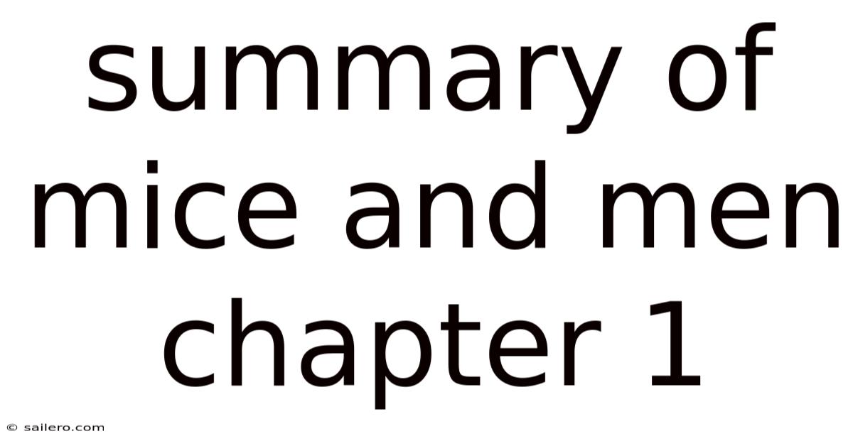 - Q: What is the setting of Of Mice and Men Chapter 1? A: The chapter takes place at dusk, in a clearing by the Salinas River in California’s Central Valley, during the Great Depression. The setting is peaceful and isolated, far from the ranch where the men will start work the next day.