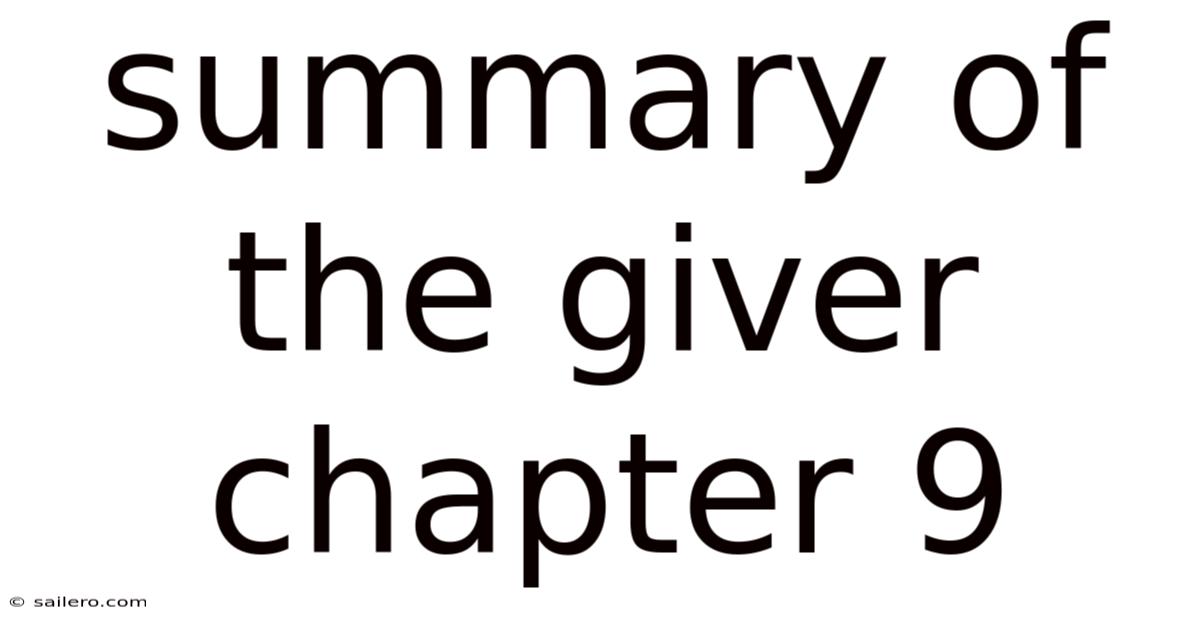 Chapter 9 continues Jonas's training sessions with The Giver, who remains the only person in the community who carries the burden of all past memories. After receiving memories of pain, hunger, and suffering in previous chapters, Jonas arrives at The Giver's dwelling expecting another difficult experience. Even so, this particular session takes an unexpected and beautiful turn.