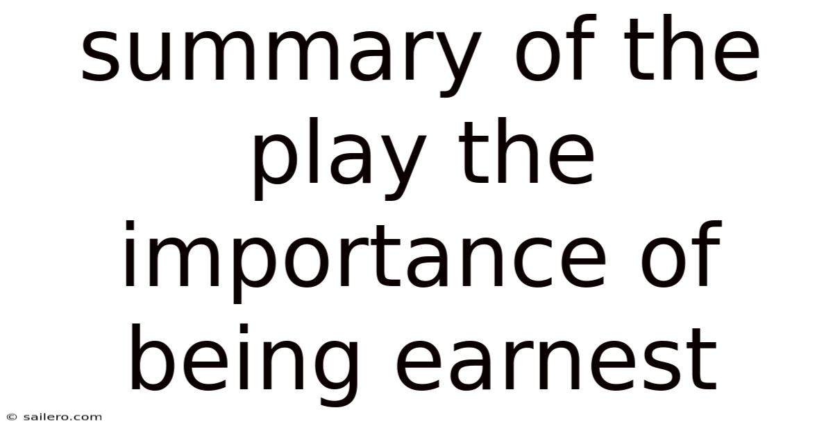 Summary of the Play The Importance of Being Earnest