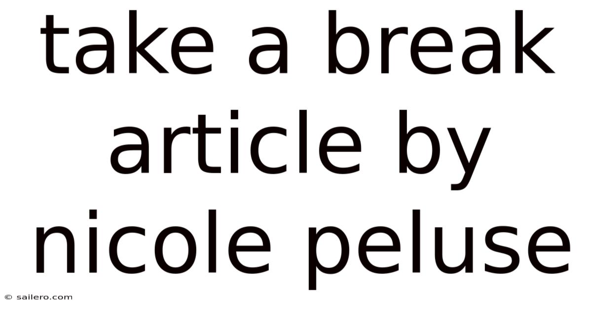 Take A Break Article By Nicole Peluse