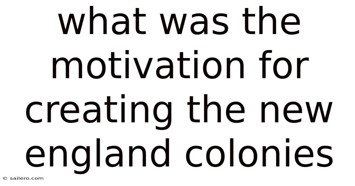 What Was The Motivation For Creating The New England Colonies