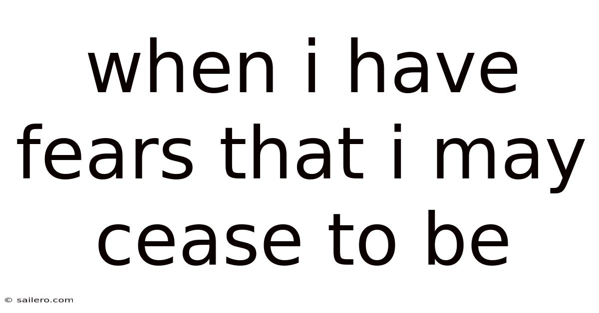 When I have fears that I may cease to be Before my pen has gleaned my teeming brain, Before high-pilèd books, in charact’ry, Hold like rich garners the full-ripened grain;