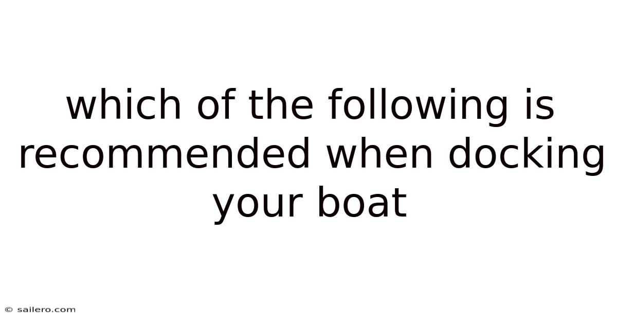 Which Of The Following Is Recommended When Docking Your Boat