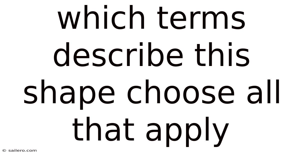 The question "which terms describe this shape choose all that apply" is a common type of query in educational settings, particularly in geometry or mathematics. That said, without a specific image or description of the shape in question, the answer must be generalized to cover the principles of shape terminology. Which means it requires the reader to identify and select the most accurate descriptors for a given shape based on its properties. This article will explore the key terms used to describe shapes, how to determine them, and examples of common shapes and their associated terms. By understanding the characteristics of shapes and the language used to define them, readers can better manage such questions and apply the knowledge to real-world scenarios.