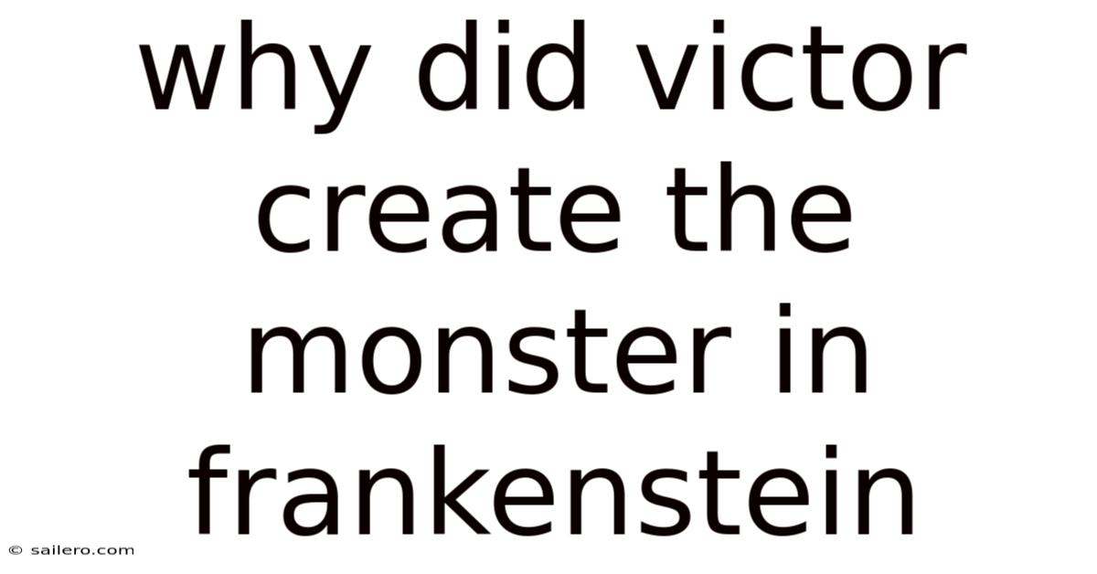Why Did Victor Create The Monster In Frankenstein